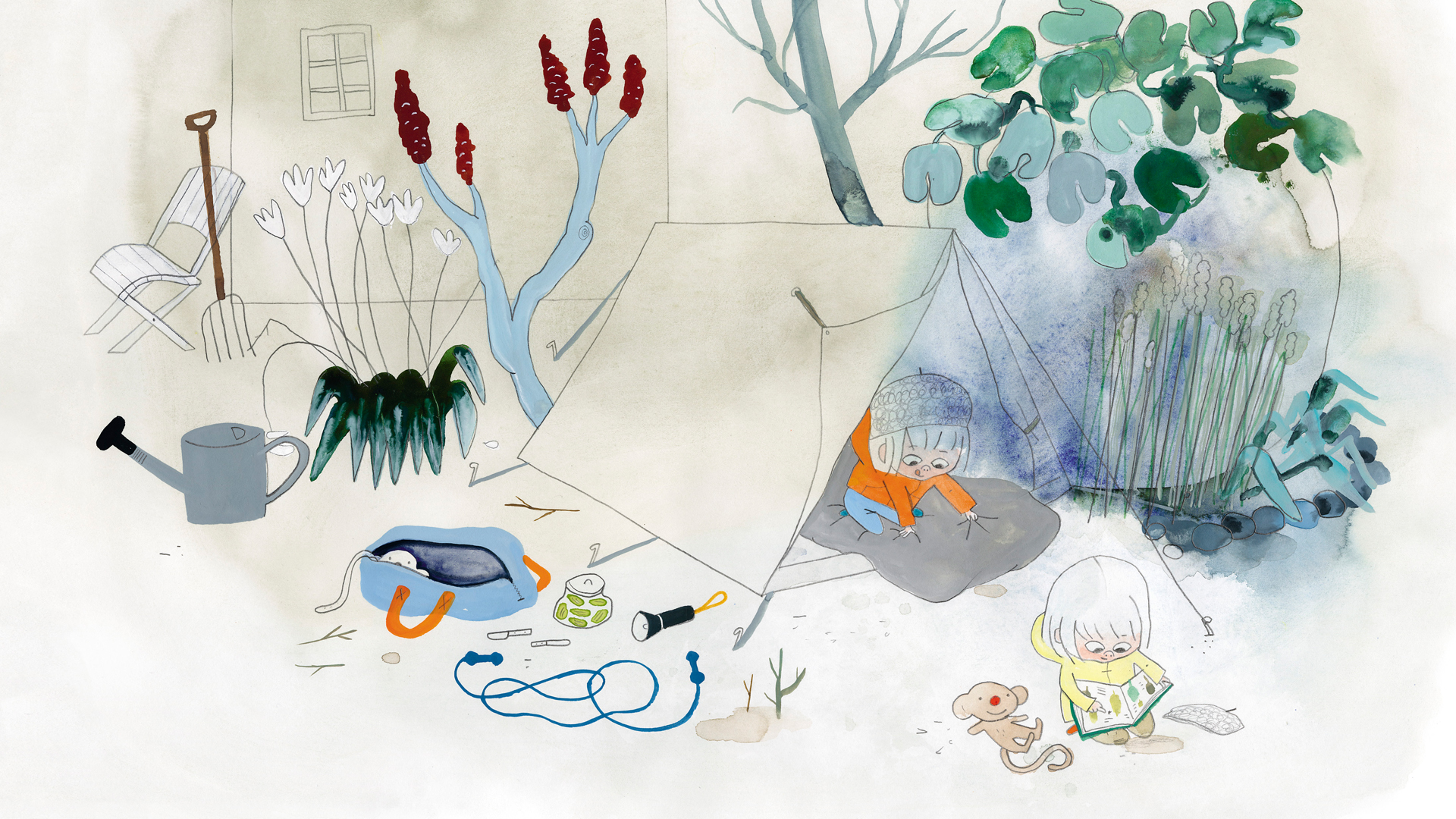 I utställningen visas originalillustrationer och skisser till en dryg handfull av Emma AdBåges böcker, bl a den Augustbelönade bilderboken Gropen. Bilderna hänger i ett lekfullt gestaltat utställningsrum med plats för läsning, lek och eget skapande.